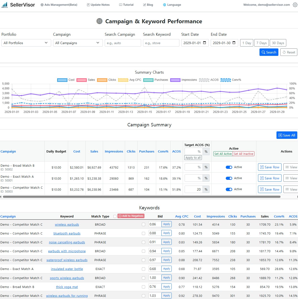 오늘은 아마존 셀러들의 이러한 고민을 덜어드리고자, 최근 업데이트된 '셀러바이저 광고 관리(Ads Management)' 기능을 상세히 소개해 드리고자 합니다. 특히 이번 업데이트의 핵심은 "누구나, 즉시 볼 수 있는 데모(Demo) 어카운트 오픈"입니다. 내 계정을 연동하지 않아도, 실제 작동하는 모든 기능을 투명하게 확인해보실 수 있습니다.